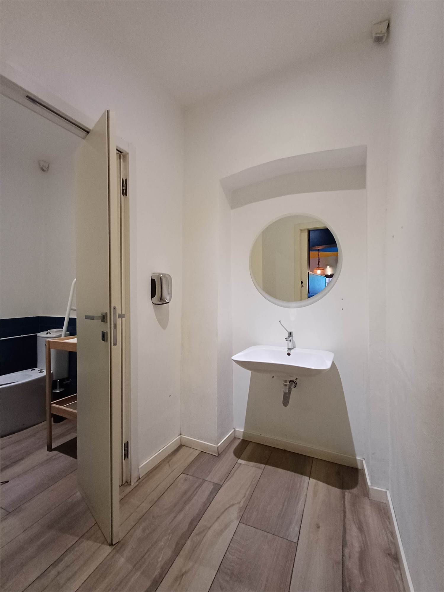Il locale si sviluppa in un ampio ambiente unico, spazioso e facilmente personalizzabile, dove trovano posto anche la cucina e il servizio. Mediante scala interna è possibile accedere a un altro vano posizionato al primo piano fuori terra adibito a spogliatoio e con ulteriore servizio.