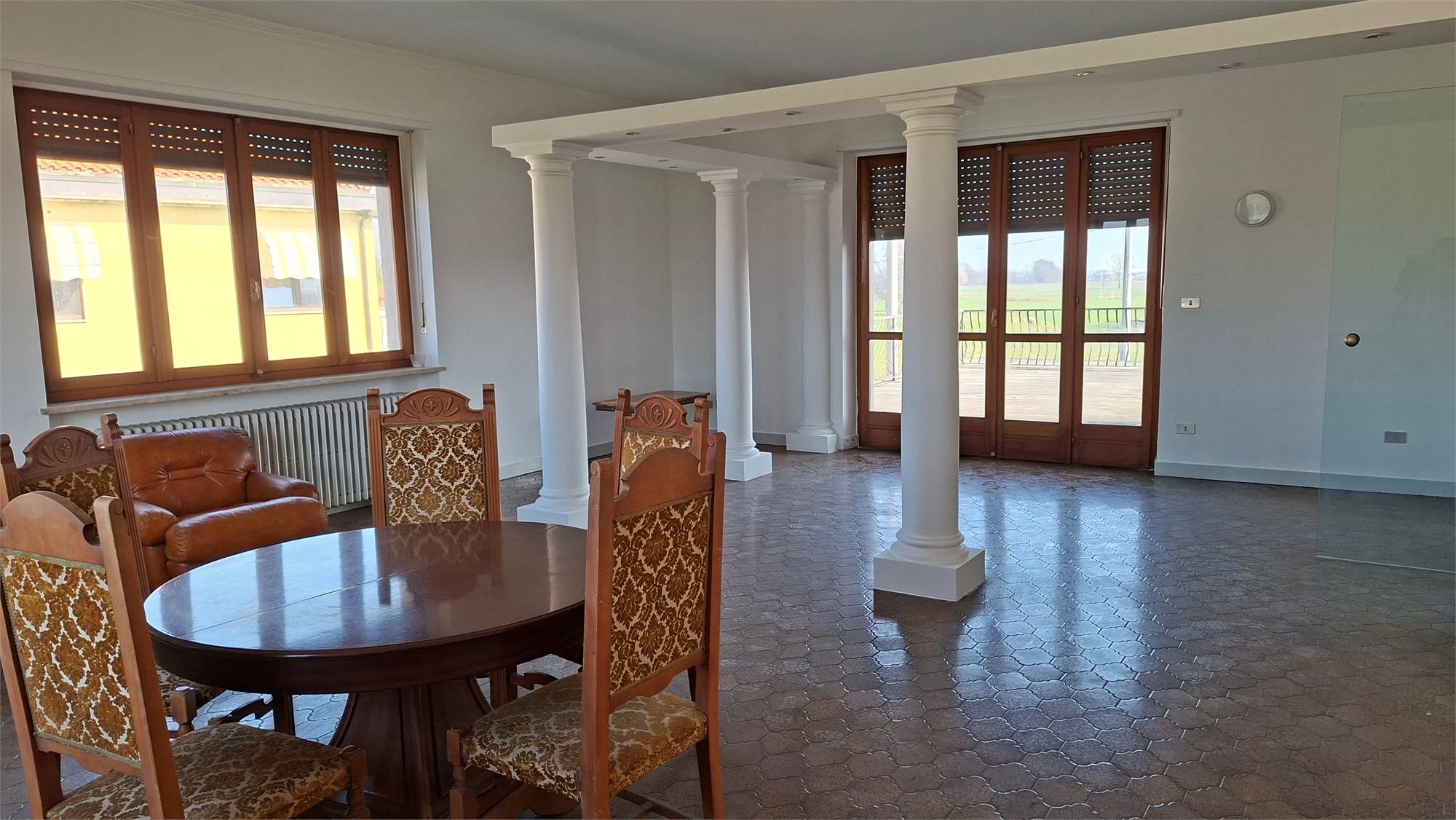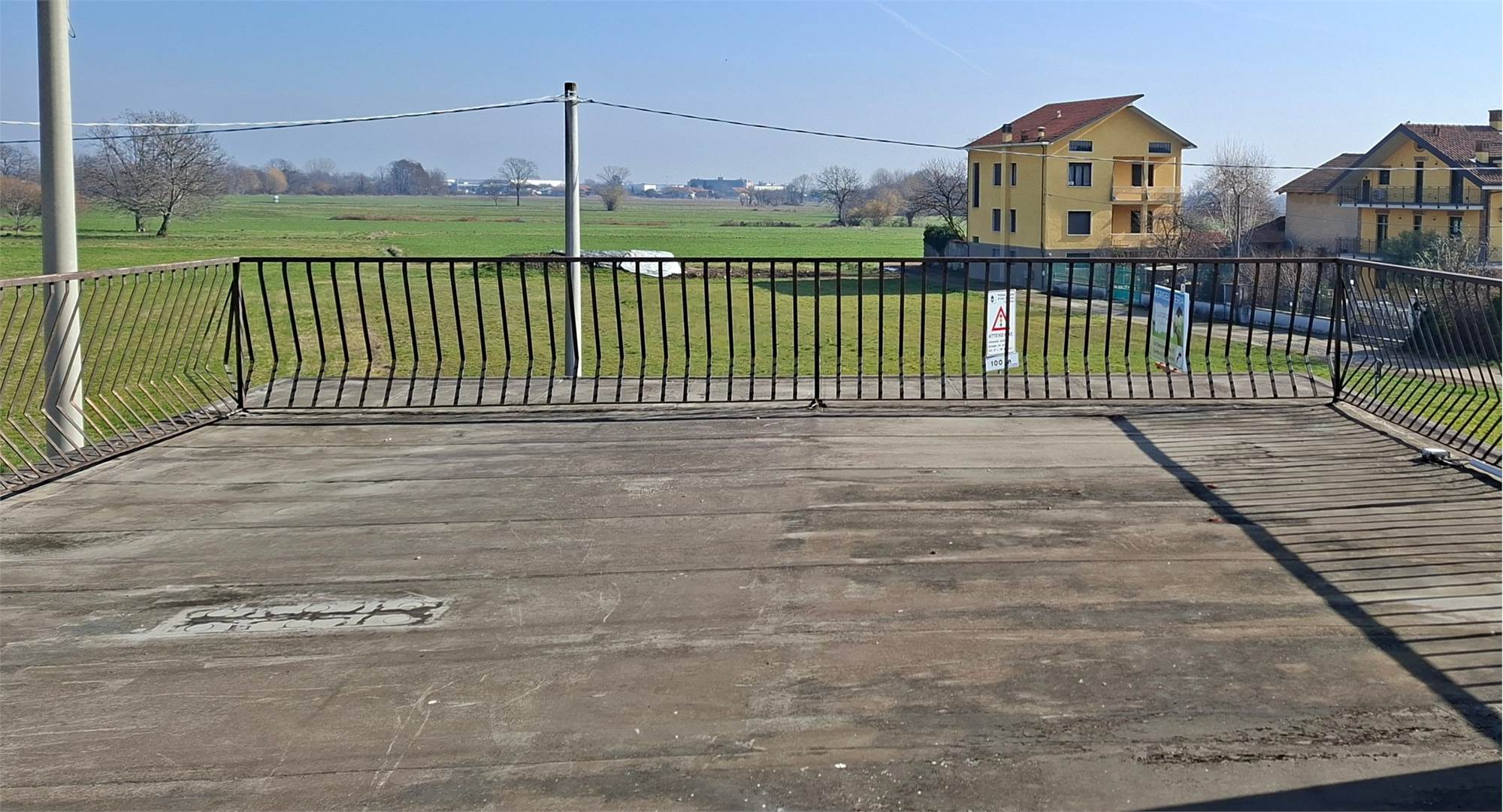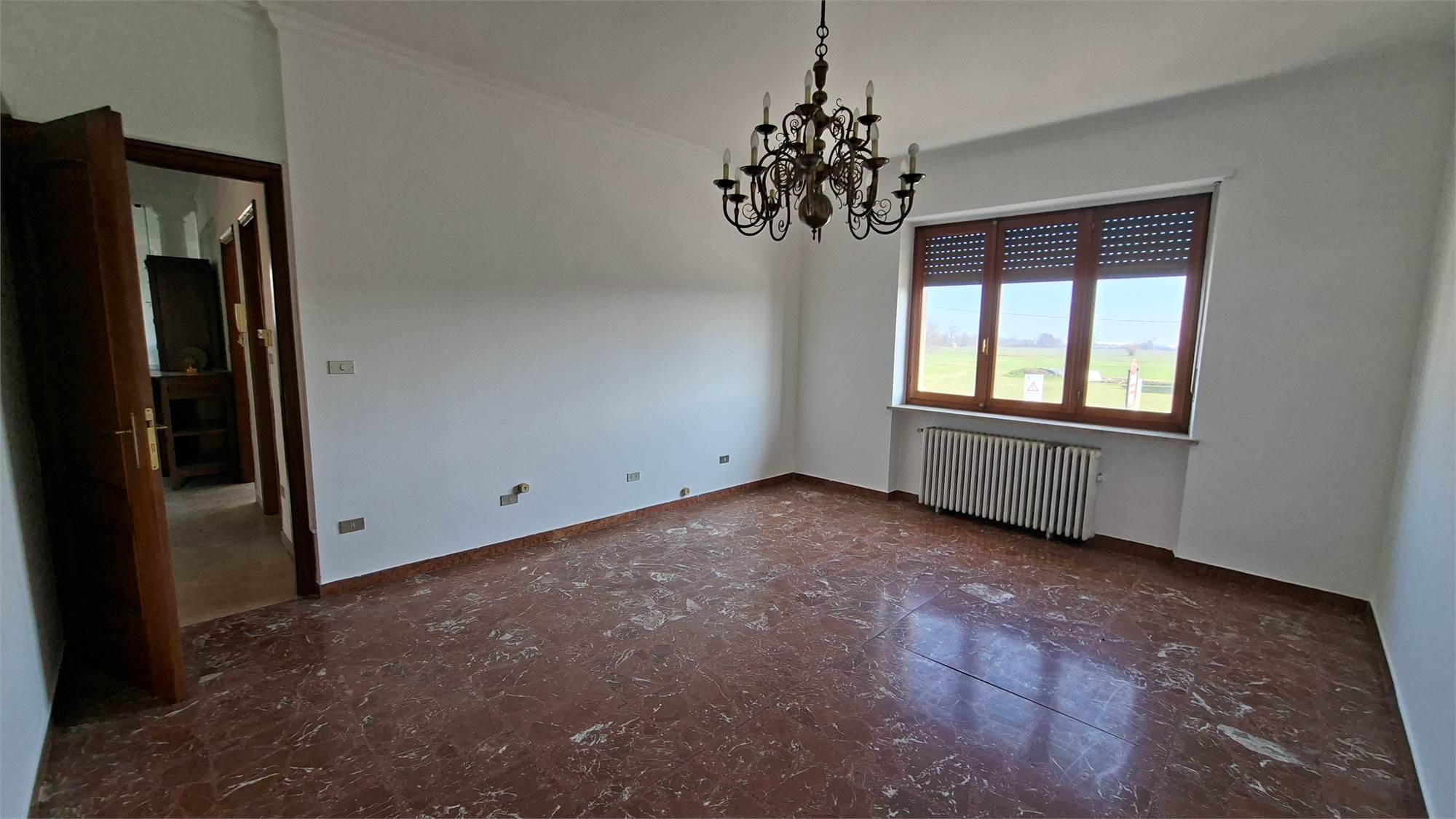 Dal salone di accede ad un ampio terrazzo che affaccia fronte strada, mentre da una camera si accede al secondo terrazzo con vista campagna.