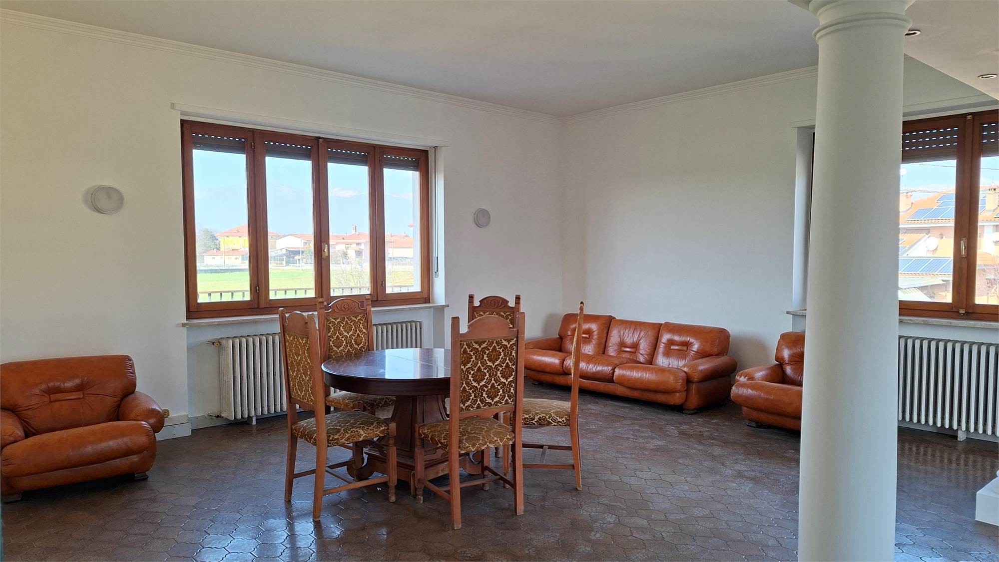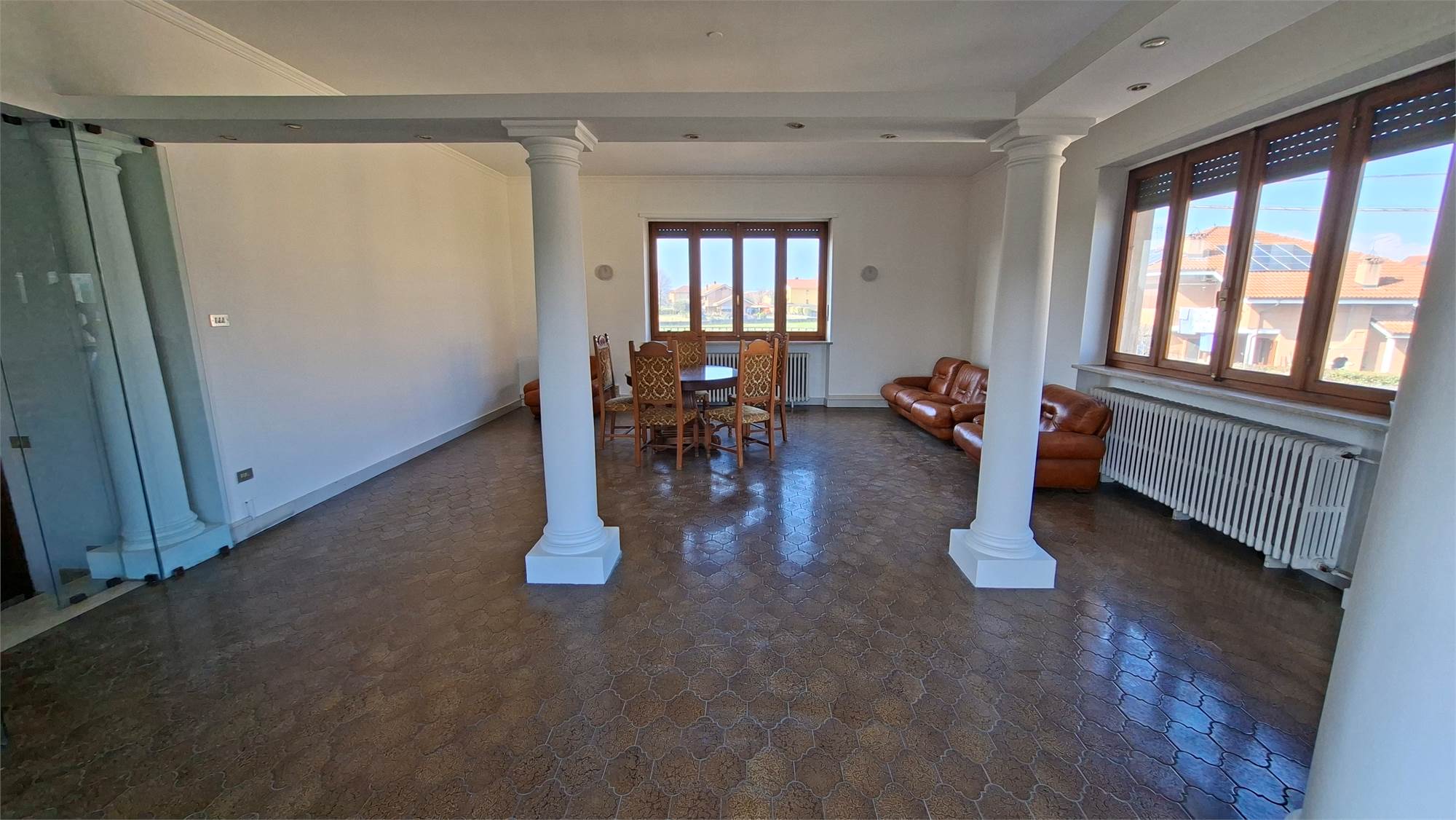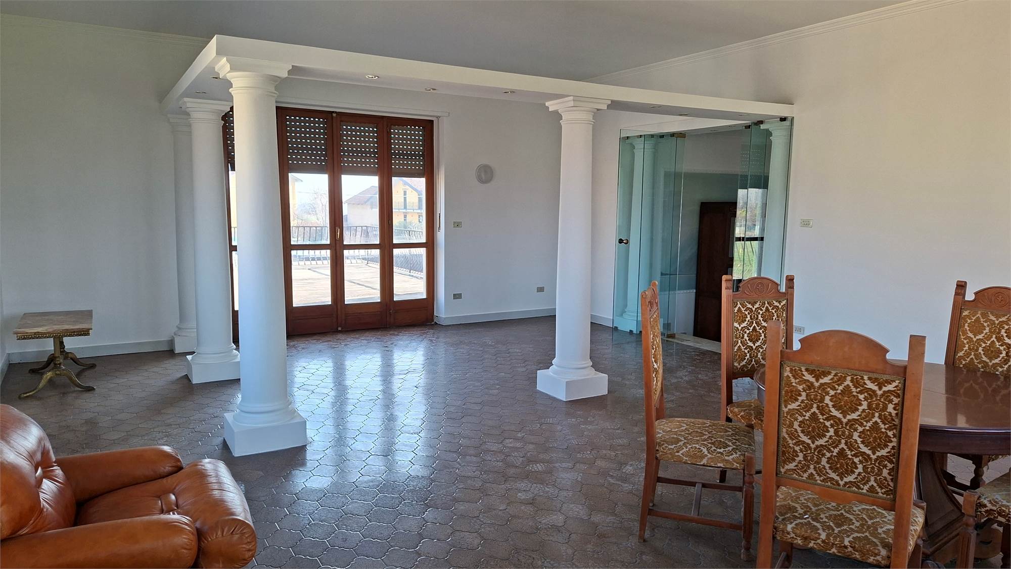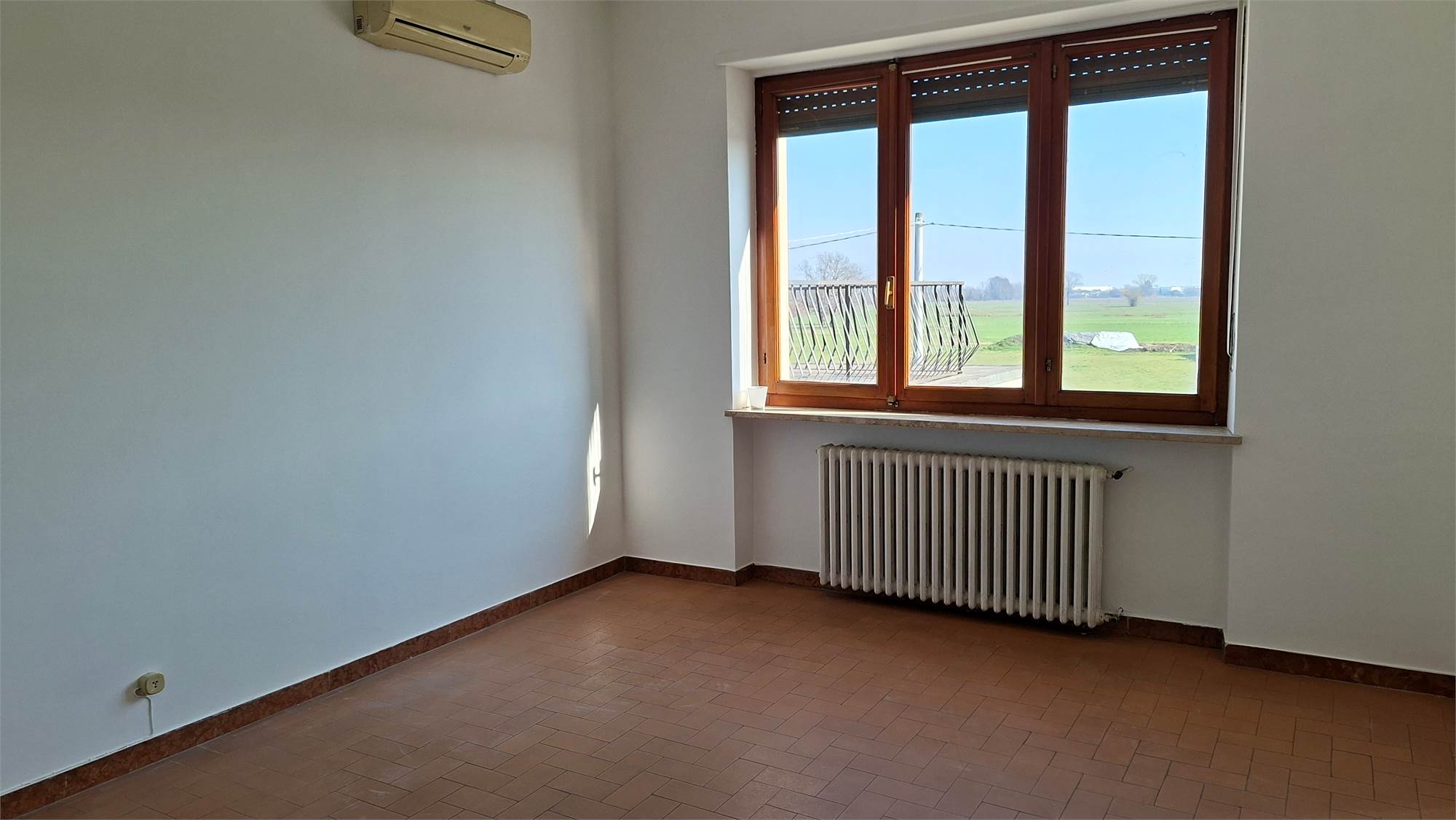 Dal salone di accede ad un ampio terrazzo che affaccia fronte strada, mentre da una camera si accede al secondo terrazzo con vista campagna.