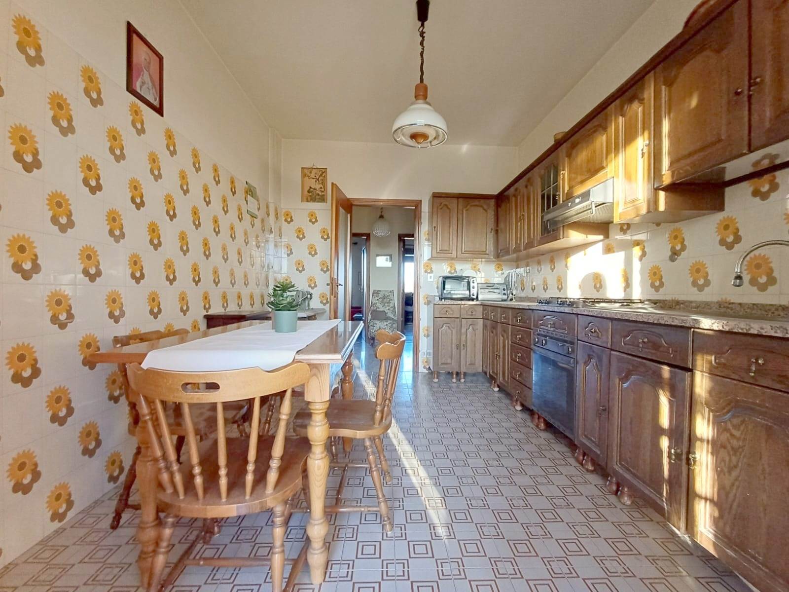 L'appartamento è composto da un ampio disimpegno centrale, cucina, due camere da letto, bagno e ripostiglio.
