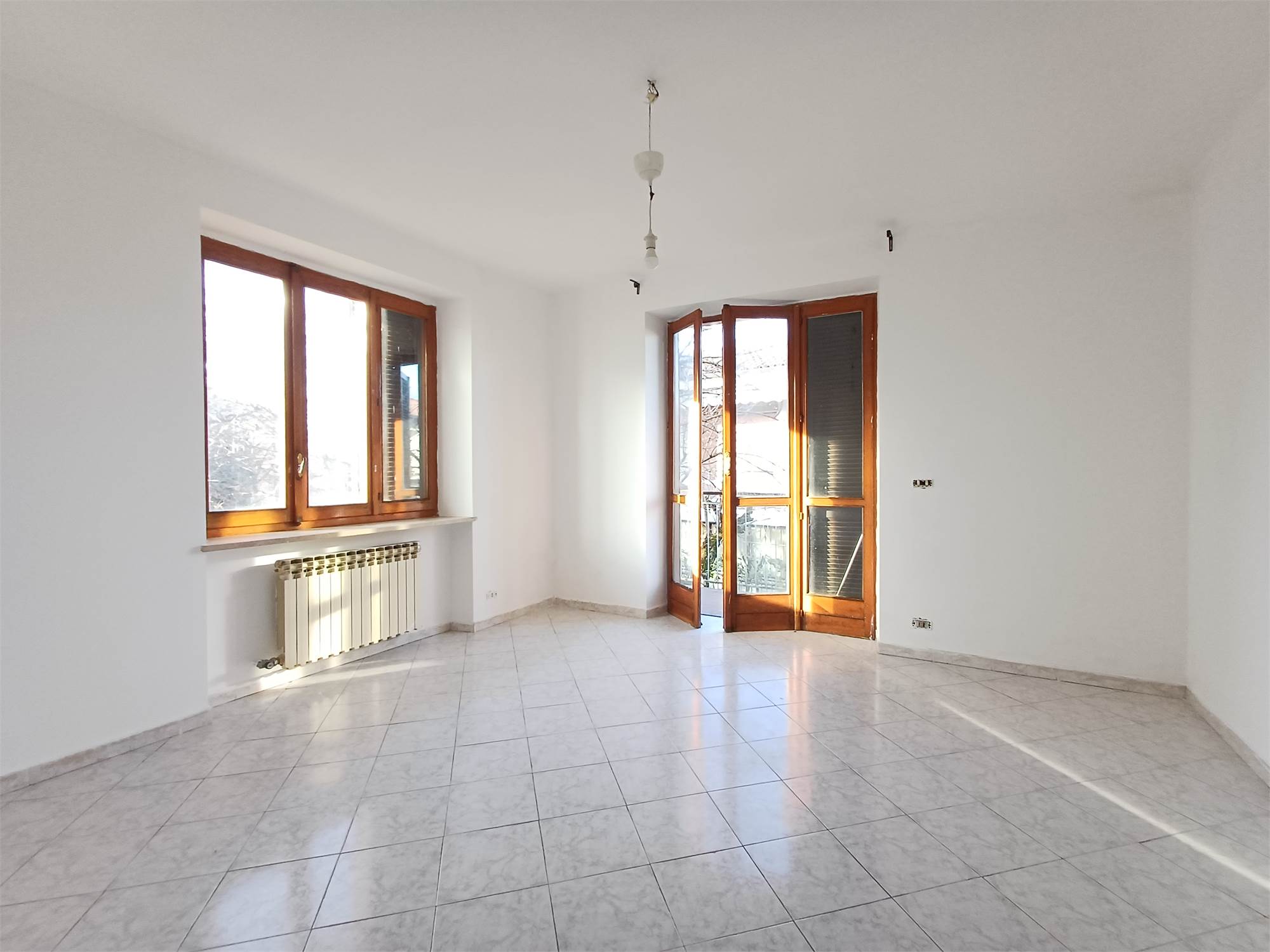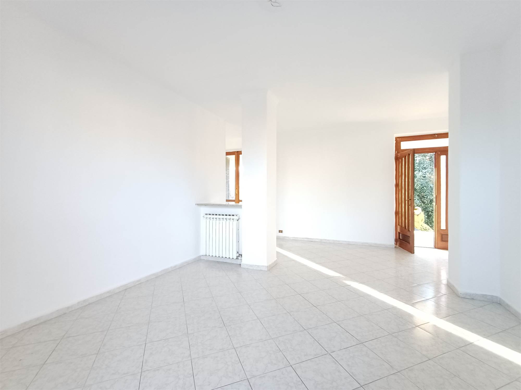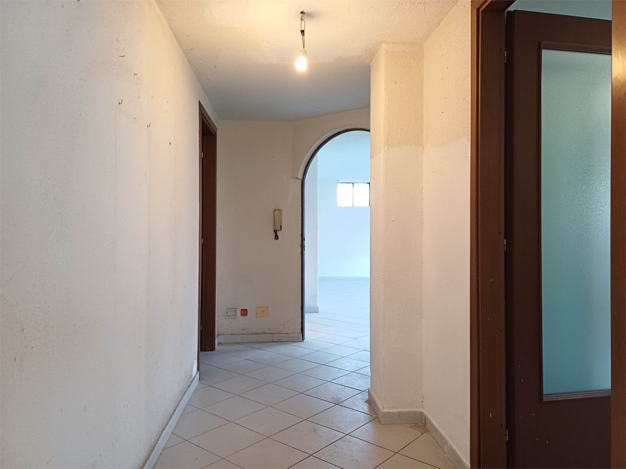 L'ingresso principale conduce alla zona giorno, composta da un soggiorno luminoso e da una cucina abitabile separata. La struttura interna consente, con un semplice intervento di rimozione della parete divisoria, di unire i due ambienti in un unico grande open-space. Il disimpegno serve la zona notte, dove troviamo due camere da letto di buona metratura, il bagno e un pratico ripostiglio.