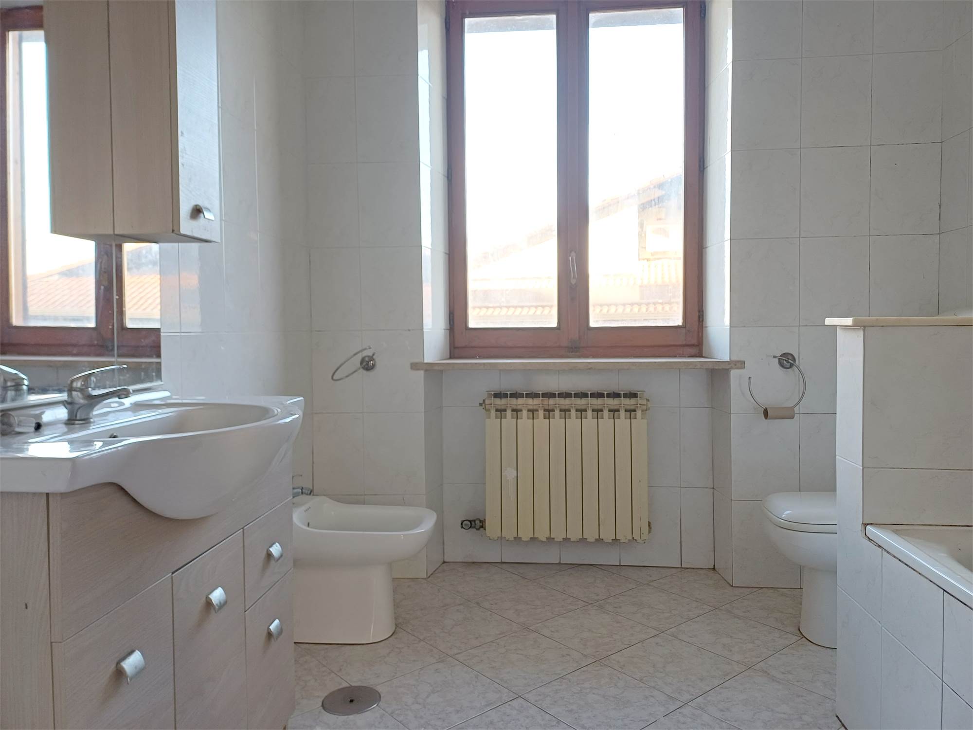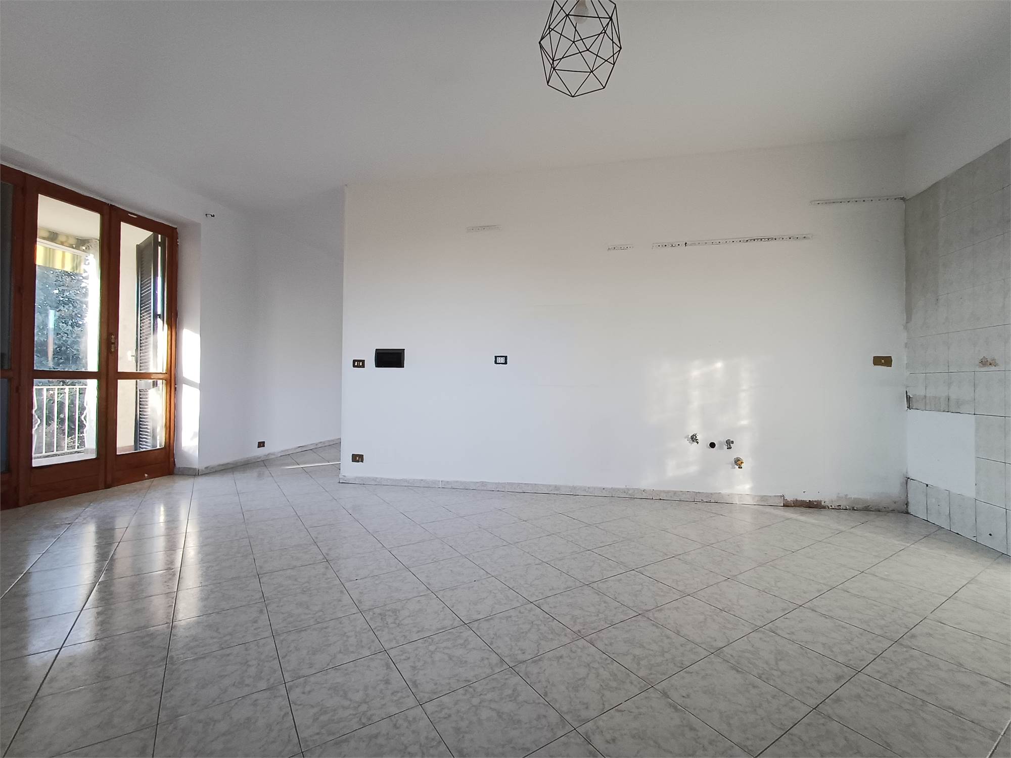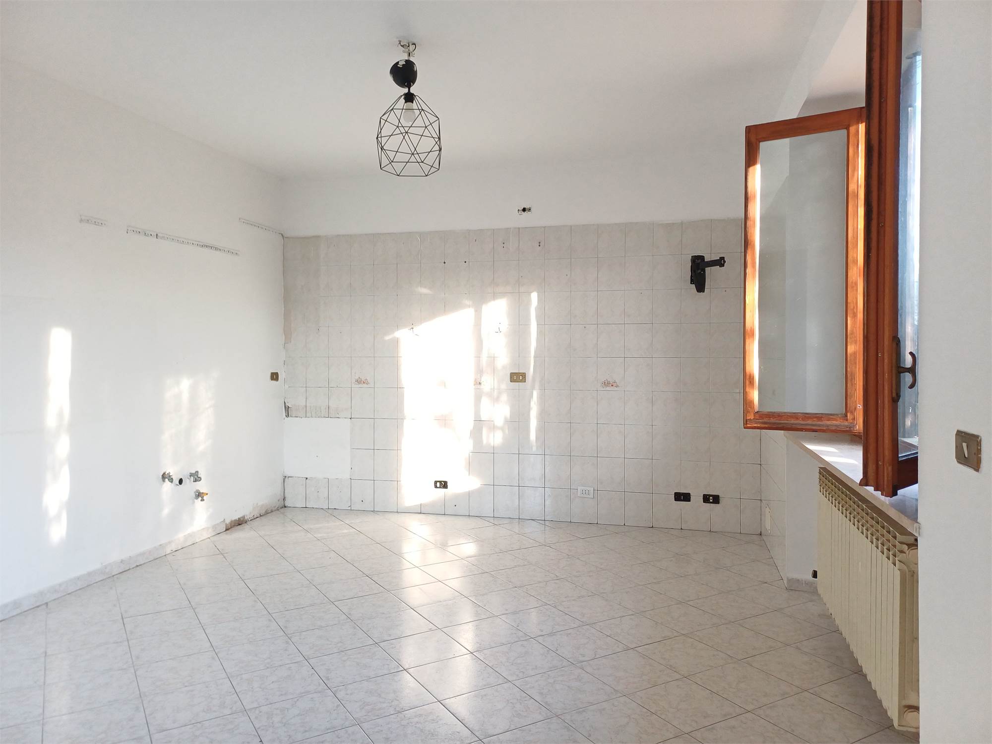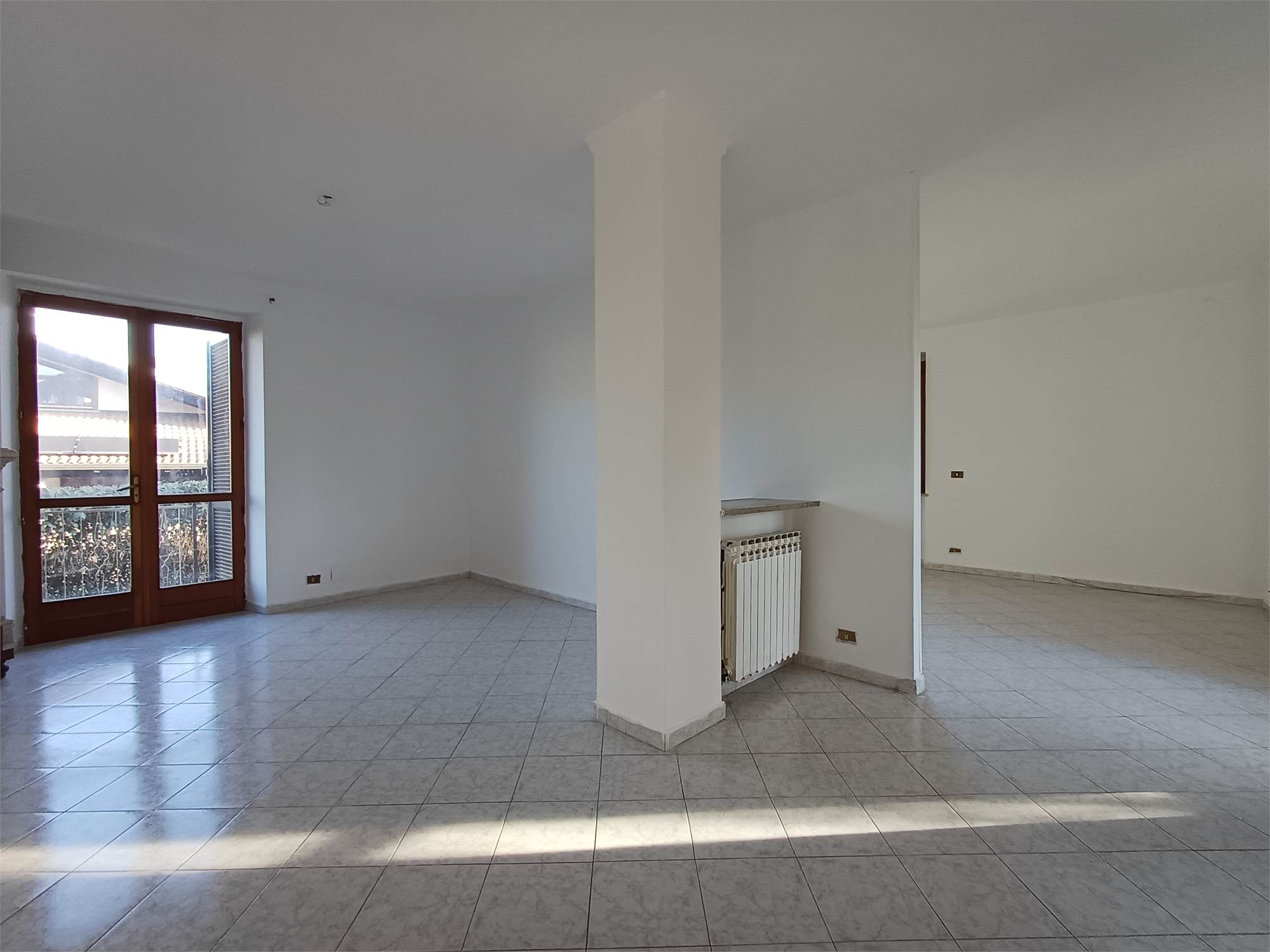 L'ingresso principale conduce alla zona giorno, composta da un soggiorno luminoso e da una cucina abitabile separata. La struttura interna consente, con un semplice intervento di rimozione della parete divisoria, di unire i due ambienti in un unico grande open-space. Il disimpegno serve la zona notte, dove troviamo due camere da letto di buona metratura, il bagno e un pratico ripostiglio.