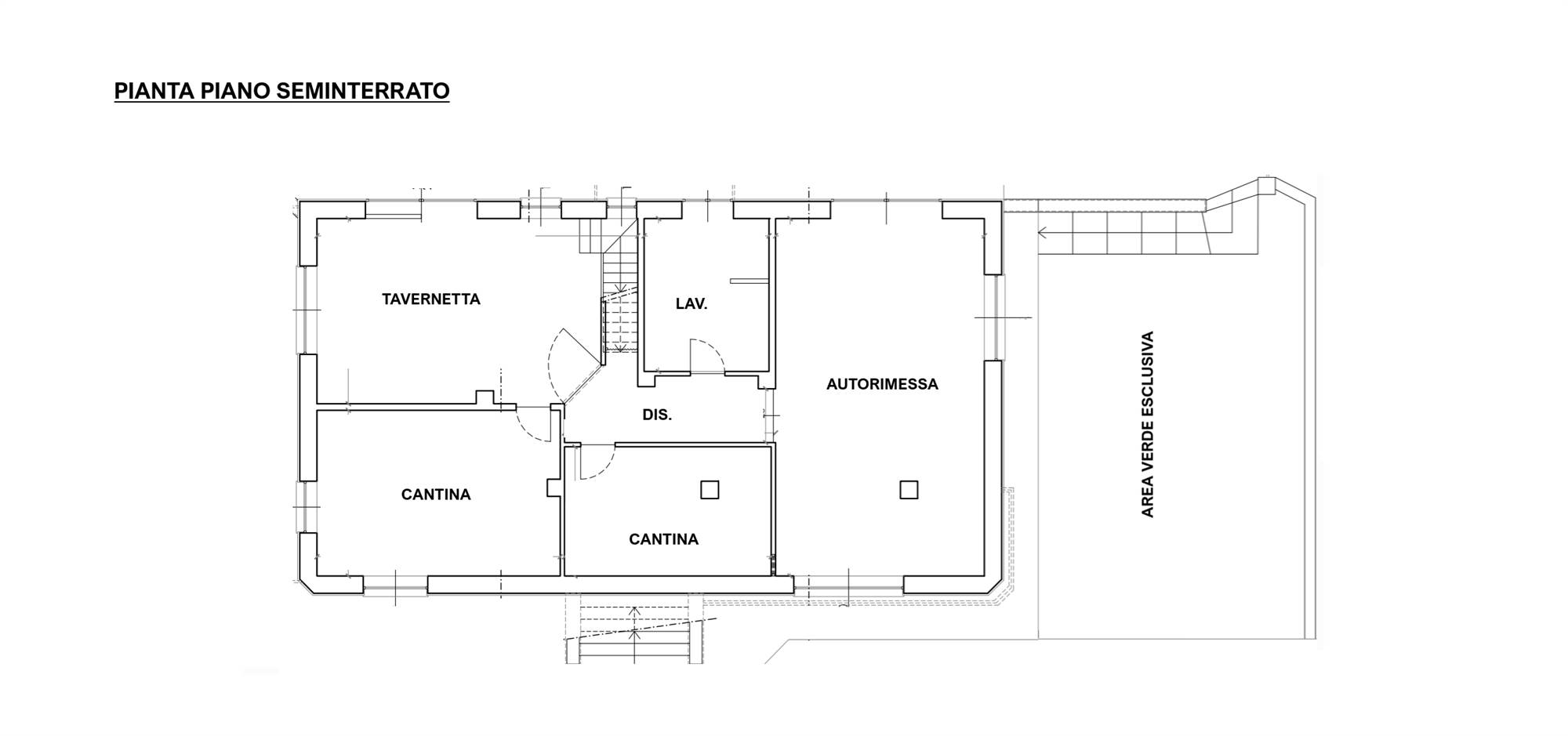 Tramite il vano scala interno si accede sia alla parte superiore che a quella inferiore della casa: al piano sottotetto è presente un vano ad uso ispezione accessibile tramite botola; al piano seminterrato si sviluppa la zona dei locali accessori, molto spaziosa e ben suddivisa tra una tavernetta, la cantina e il locale lavanderia.